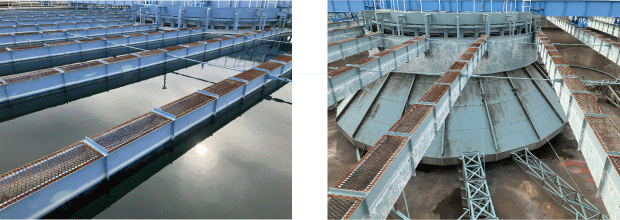 写真(右):水を張った状態の高速凝集沈殿池(アクセレータ)