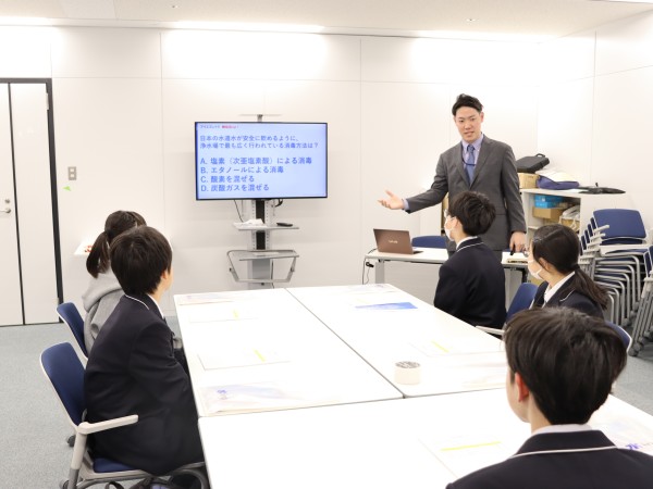 水インフラや仕事の内容についてクイズ形式で理解を深める生徒