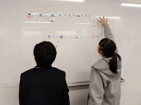「水処理カード」を使いフロー図を組み立てる生徒